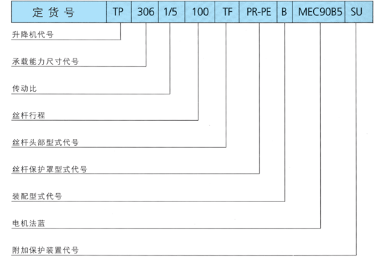 TP螺桿升降機型號標示方法: