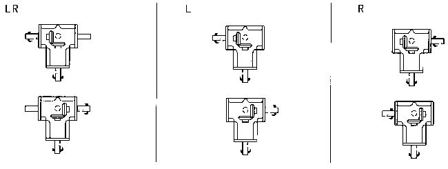 ARA系列螺旋錐齒輪轉向箱軸配置、旋轉方向關系及傳動能力表