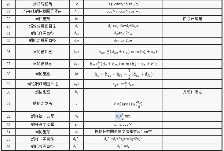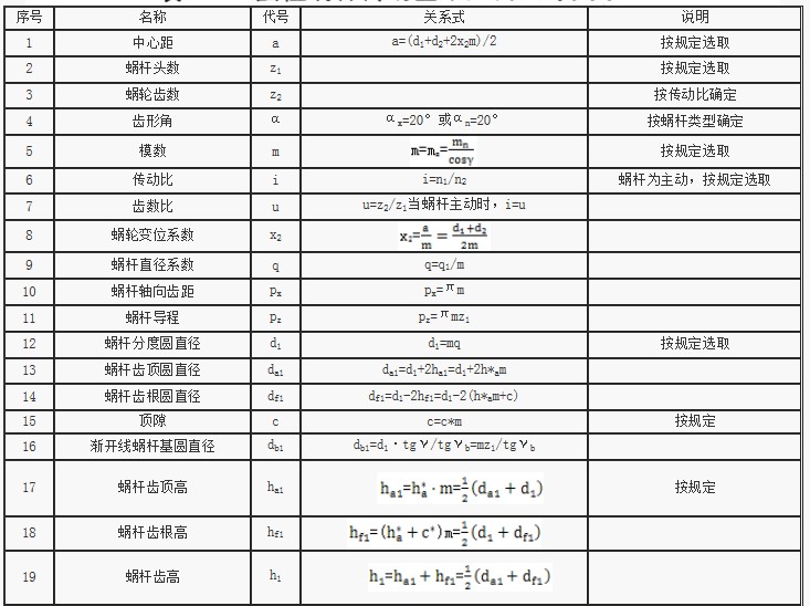 標(biāo)準蝸輪蝸桿幾何參數(shù)關(guān)系公式