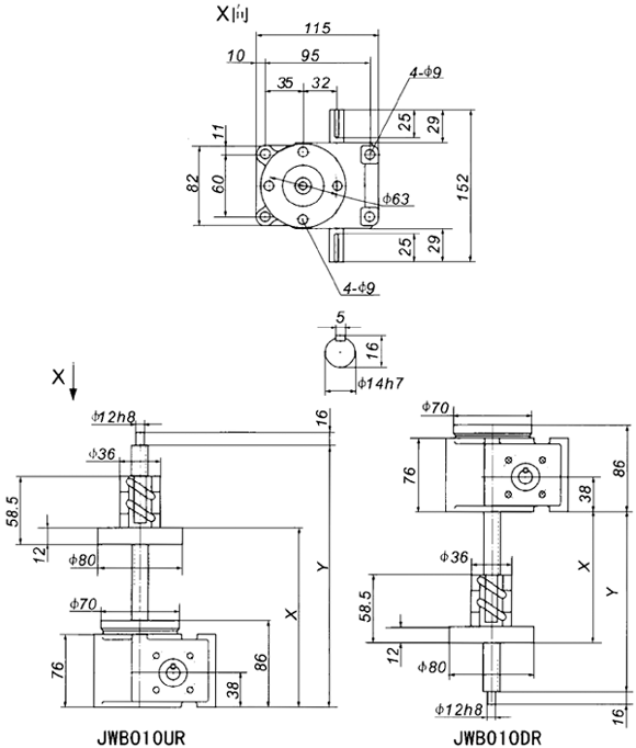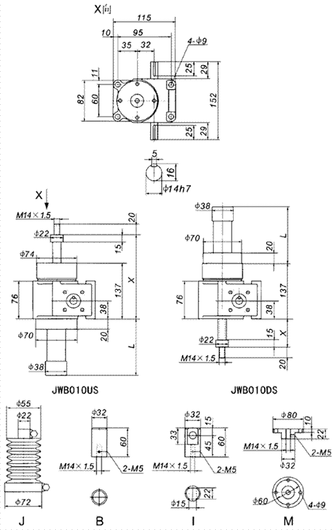 JWB絲桿升降機-JWB010滾珠絲桿升降機尺寸-海洋傳動