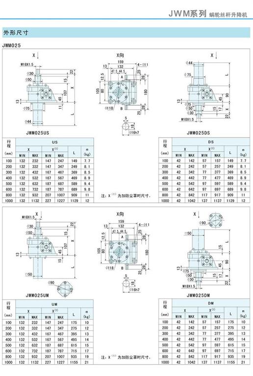 減速機(jī)|蝸輪絲桿升降機(jī)-JWM升降機(jī)025外形尺寸圖-海洋傳動(dòng)