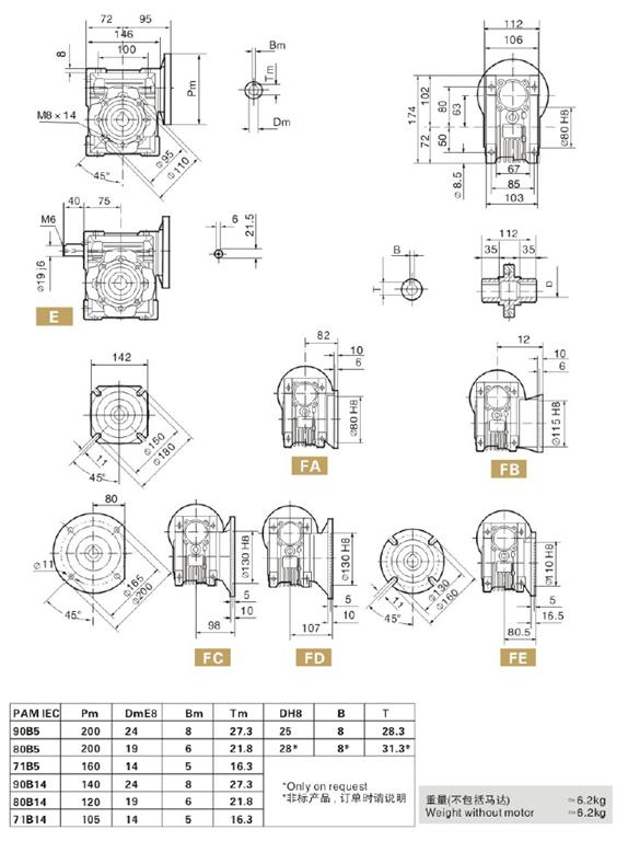 NMRV63減速機尺寸如下: