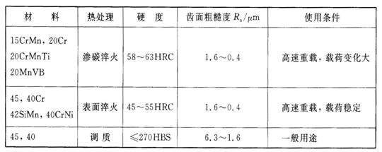 高速、重載但載荷平穩時用碳鋼、合金鋼,表面淬火處理;